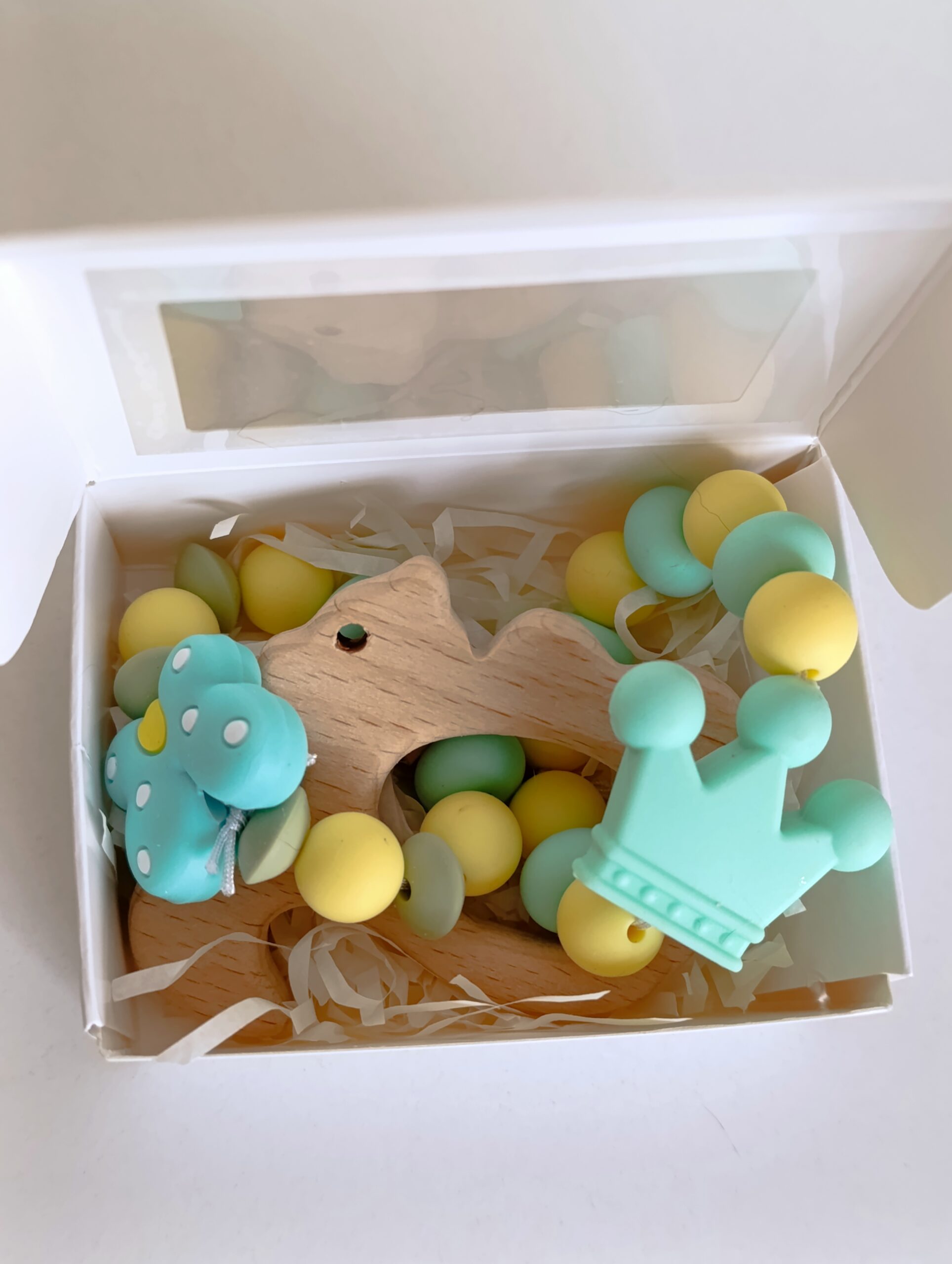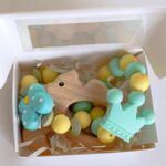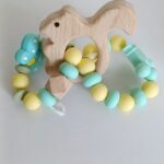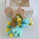 Бебешка гризалка от бебешки силикон и буково дърво+Бебешки клипс за залъгалка с име по ваш избор
