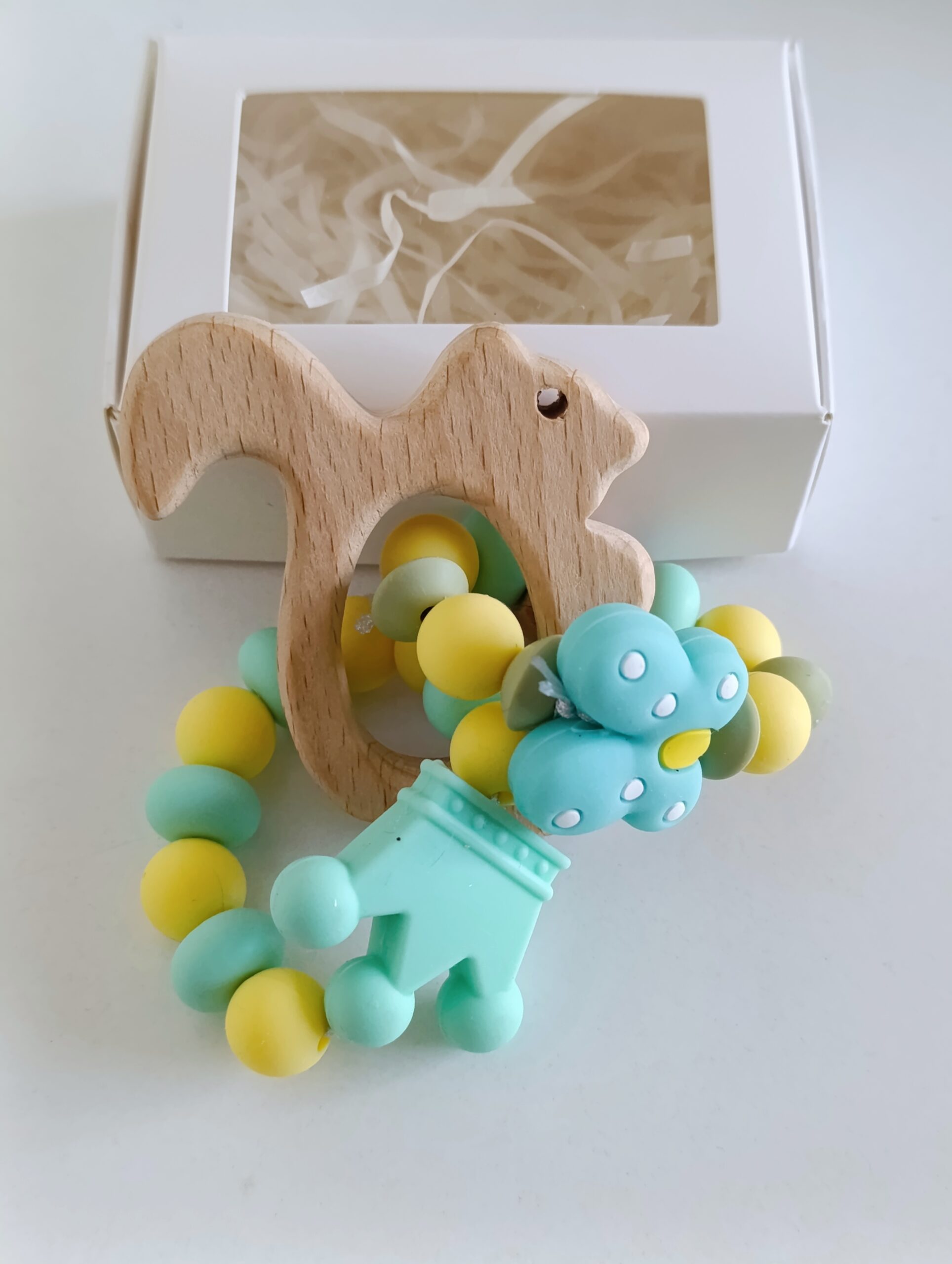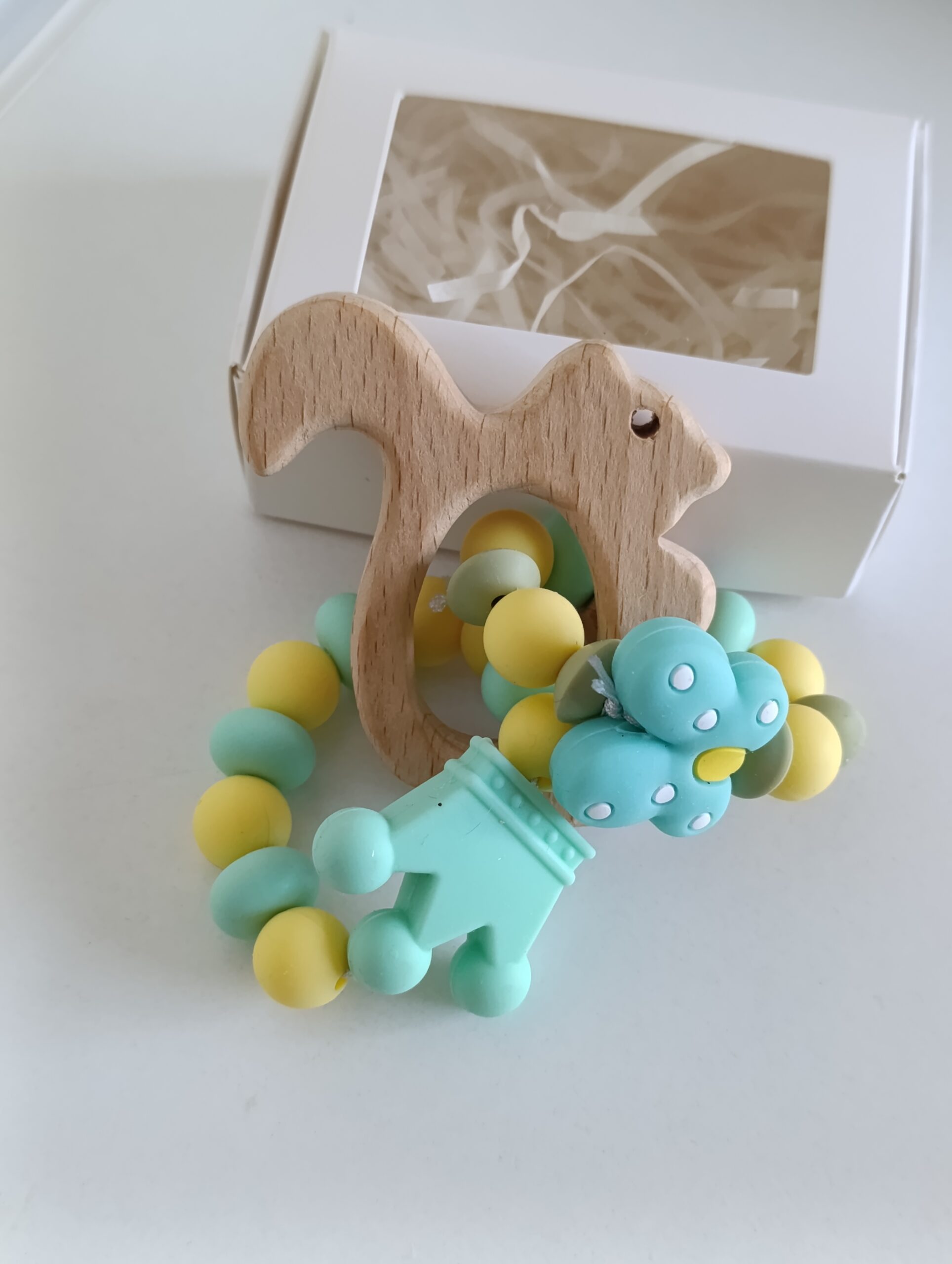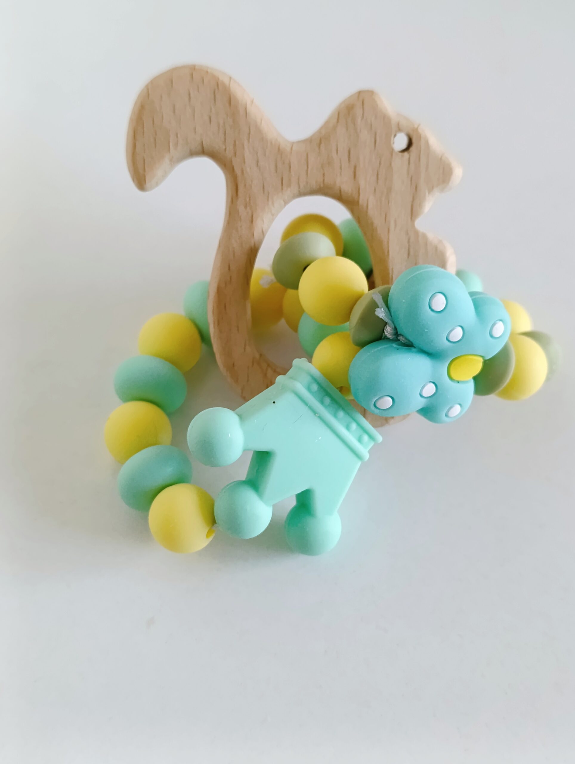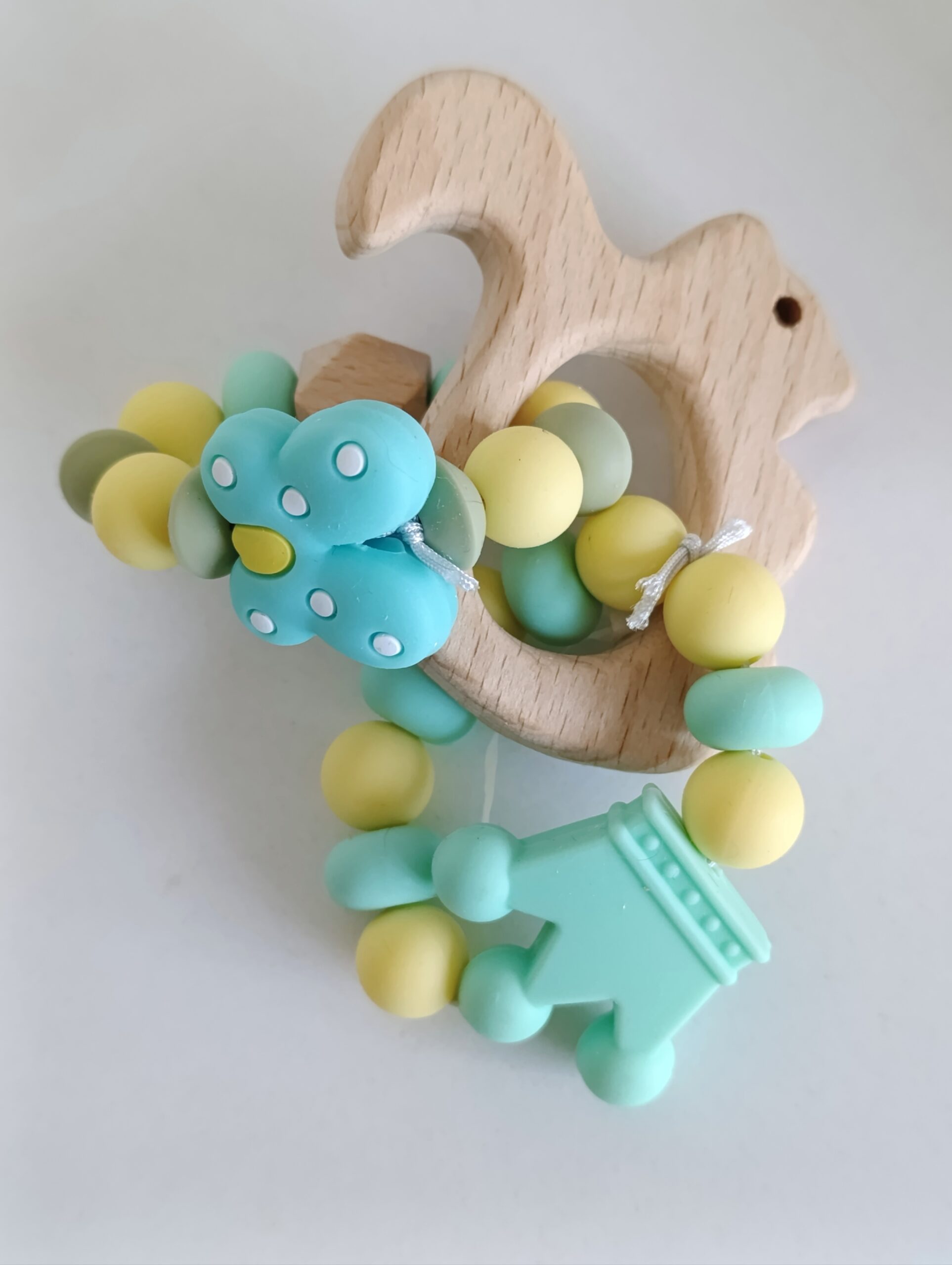 Бебешка гризалка от бебешки силикон и буково дърво