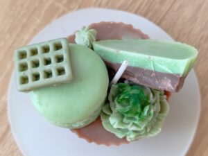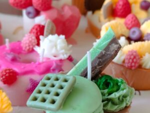 Комплект клипс за залъгалка и гризалка "Мече" унисекс+Клипс за залъгалка универсален без име+Соева свещ "Мъфин ванилия" с аромат на нежна ванилия